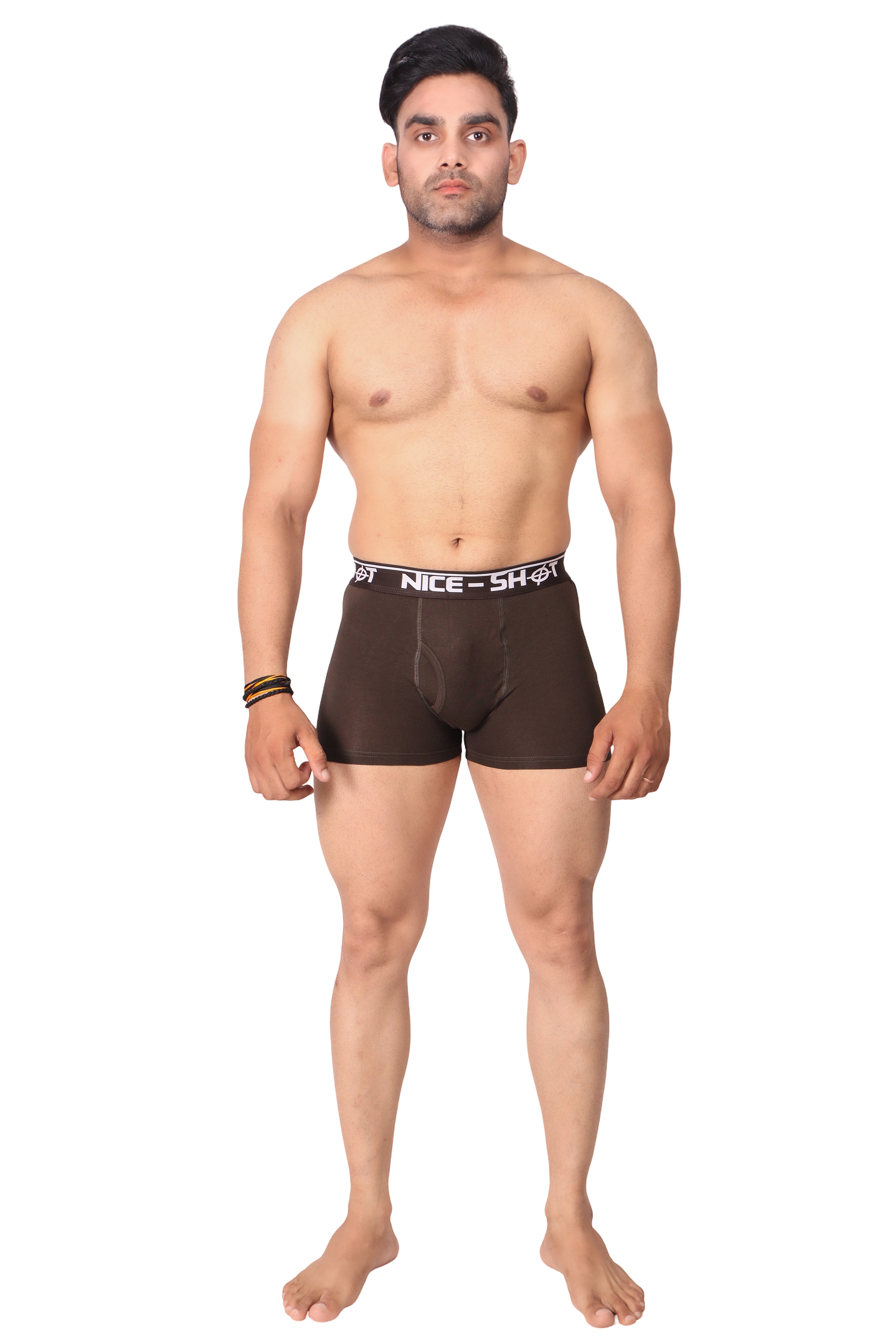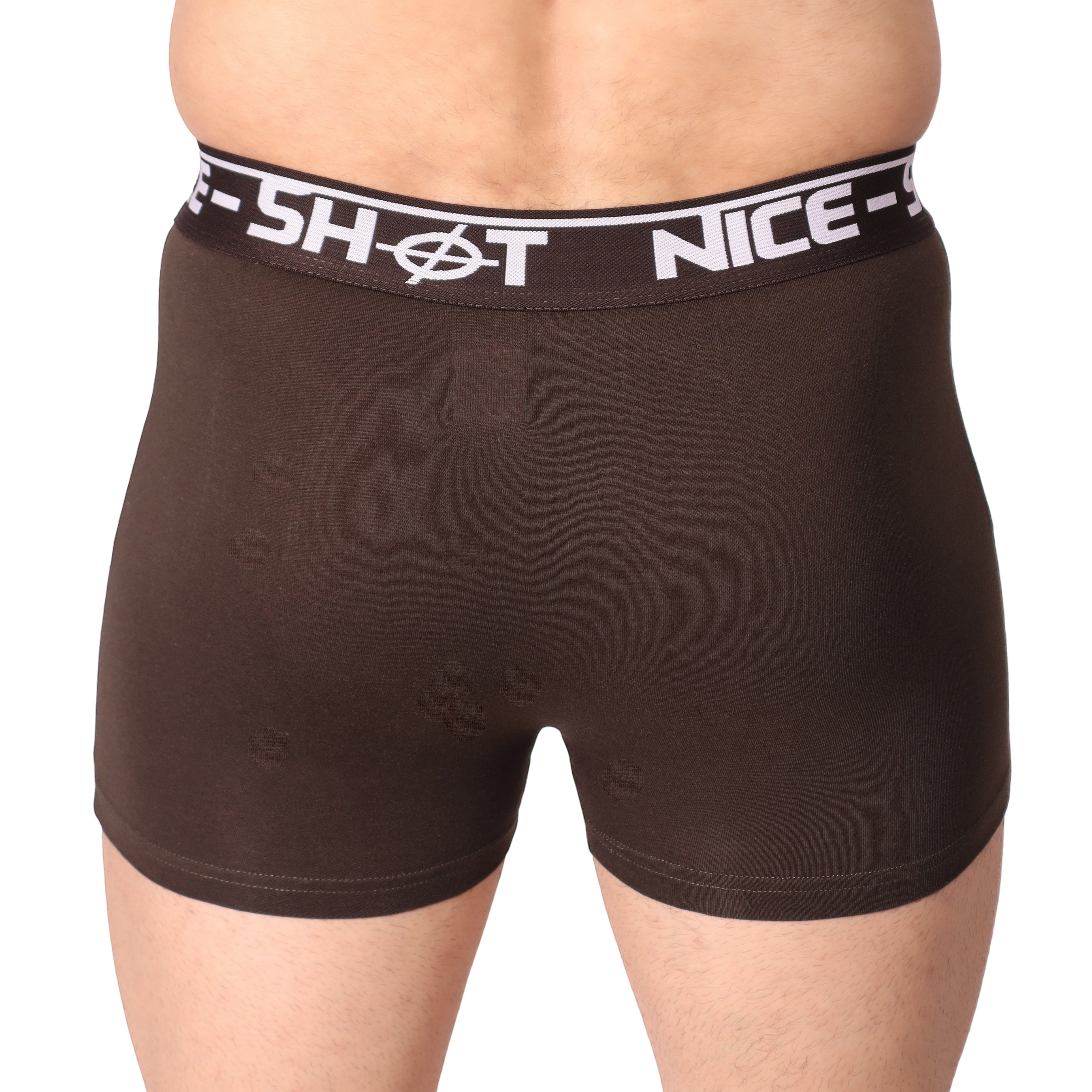 Add reliable comfort and earthy style to your underwear drawer with these solid brown boxer briefs. Featuring a crisp white “NICE SHOT” waistband, these are crafted for performance, softness, and day-long wear.